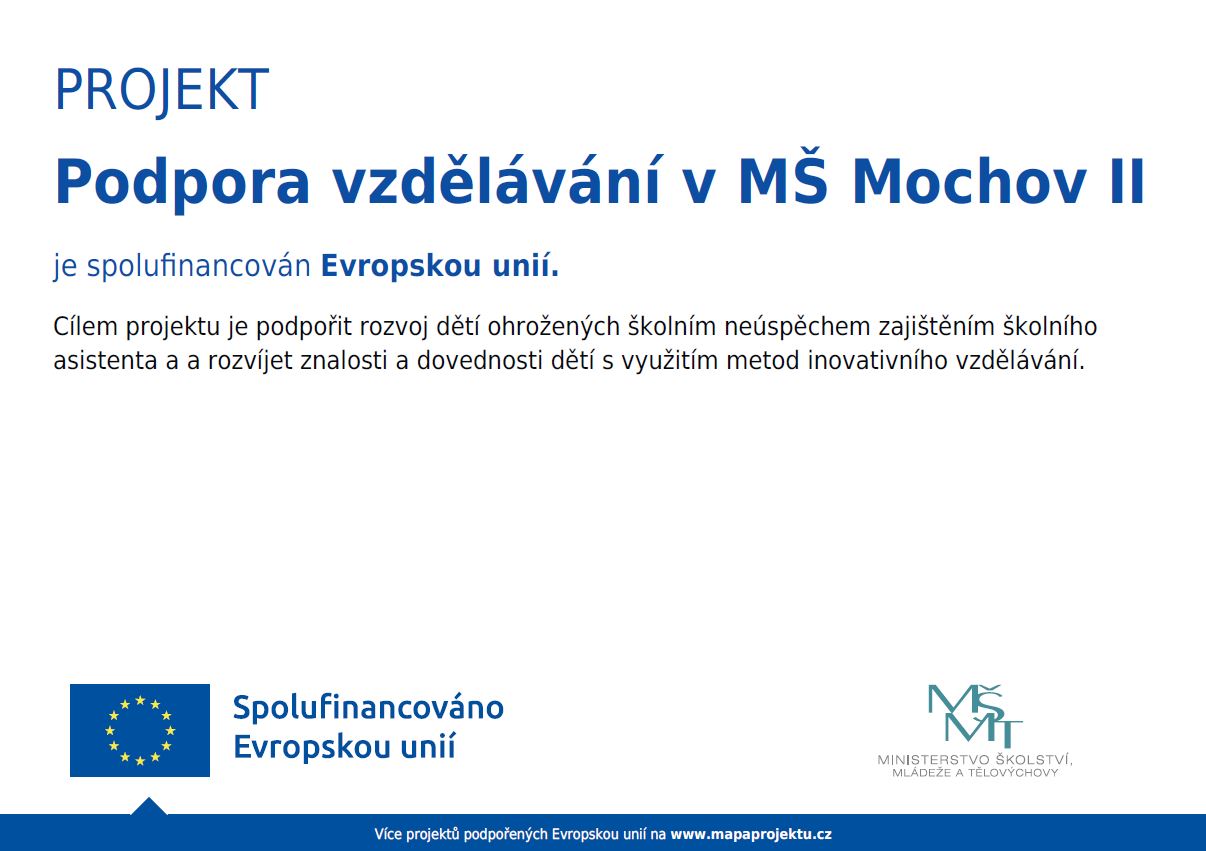 PROJEKT - ŠKOLNÍ ASISTENT PRO MŠ MOCHOV III - BYL UKONČEN k 30.11.2022